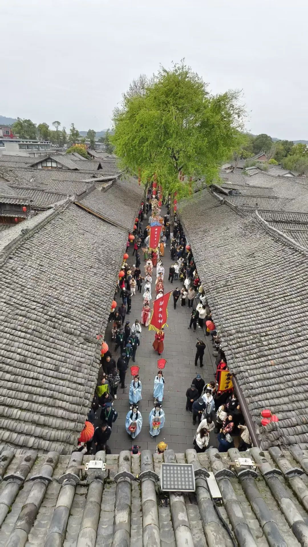 合卺、结发、盟誓、执手……3月29日下午,在阆中古城街道上,充盈着典雅的汉式婚礼展示秀、婚服巡游活动吸引大批游客驻足观赏,成为活动的亮点。