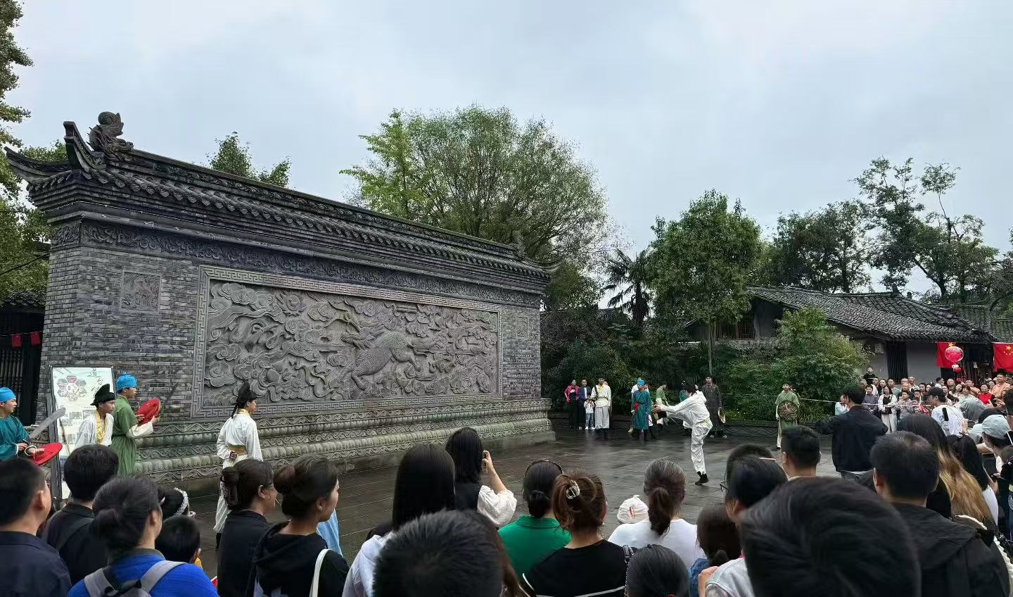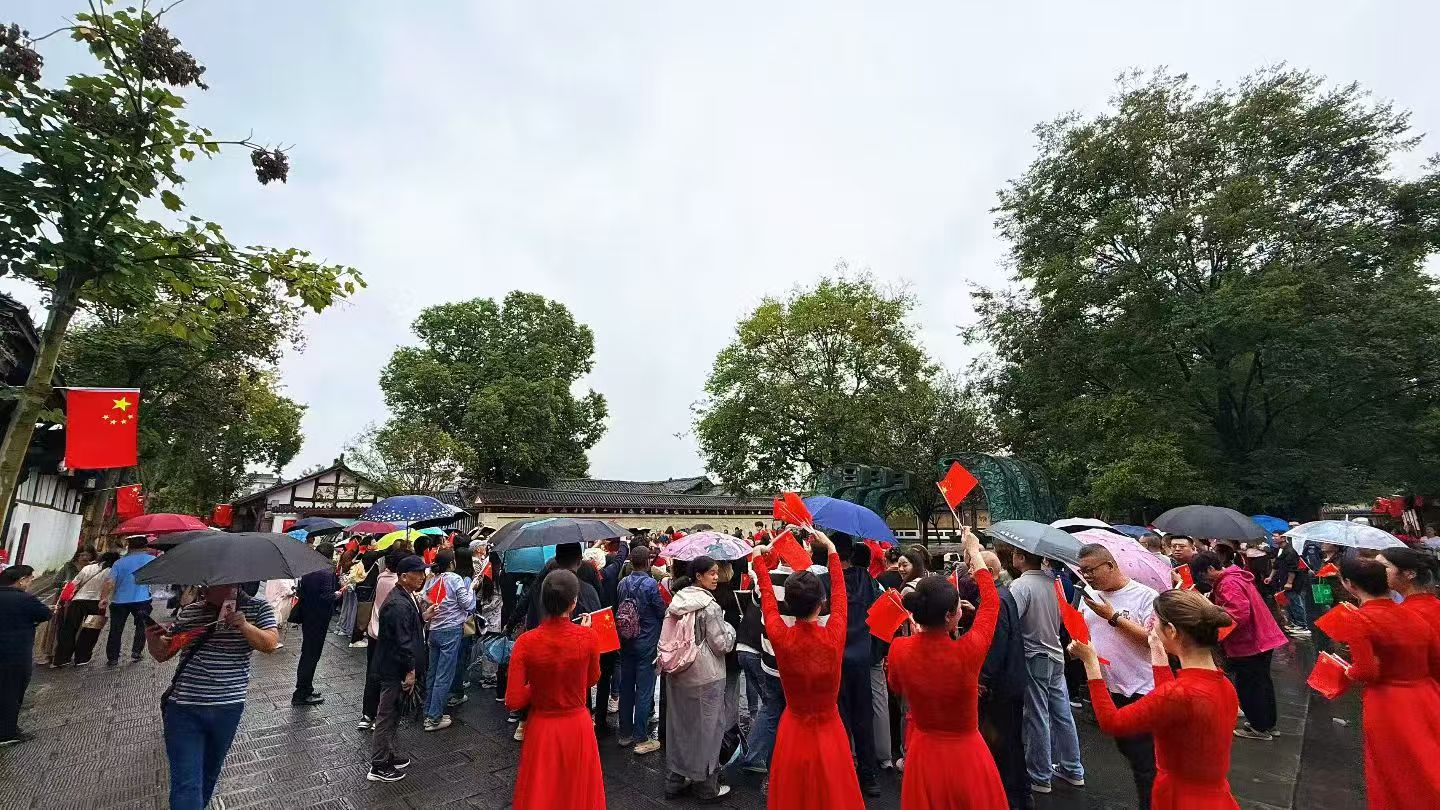 今天是国庆假日第一天,阆中古城景区红旗飘扬、人来人往,处处洋溢着浓厚的节日氛围。“拜见将军”、“歌舞快闪”、“街头杂耍”等演艺活动轮番上演,让首批抵阆游客在互动体验中感受到传统文化与景区国庆主题活动精彩融合所迸发出的魅力。