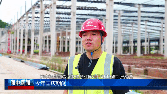 阆中智能制造近零碳产业园项目总工程师 张洧浩:“今年国庆期间,我们项目部组织了百余名工人坚守施工岗位,我们把国庆黄金周转化为工程攻坚周,采取抢晴天、备雨天、抓间隙的措施,保证项目建设在假期不停步、不减速,确保项目如期交付。”