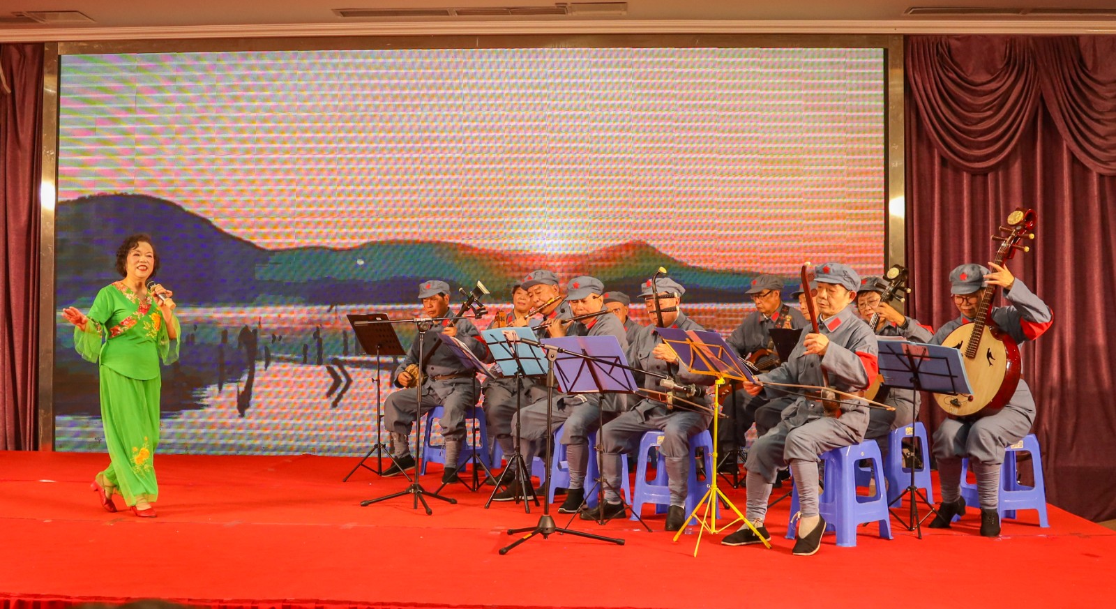 活动伊始,非遗民乐演奏团队登场,二胡、琵琶、阮等传统乐器齐鸣,将传统民乐的典雅韵味展现得淋漓尽致,为现场观众带来一场非遗文化的听觉盛宴,也拉开了活动的序幕。随后,女声独唱、特色民俗舞蹈、幽默相声等众多节目演绎精彩非凡,赢得台下阵阵掌声。最后,合唱队队员们着装整齐,用饱满的热情和洪亮的歌声,以一曲激昂的大合唱震撼全场,传递出对生活的热爱与对长辈的祝福。