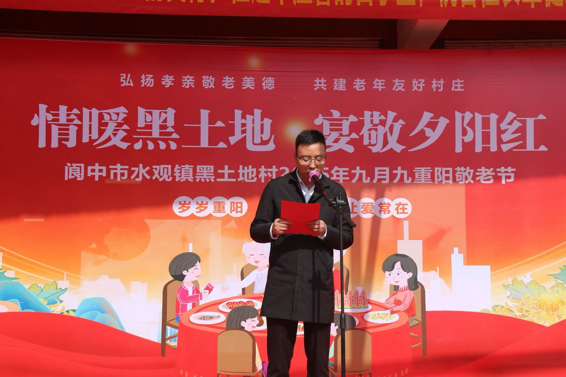 活动伊始,由水观镇黑土地村党支部书记发表致辞。他讲到,黑土地村在上级党委、政府的坚强领导下,在各位老前辈的辛勤耕耘下,全村山、林、水、田、路、房发生了令人瞩目的变化,实现了党风、社风、民风的根本好转。黑土地村孝敬父母的懿德蔚然成风,不仅涌现出了敬老爱老的乡贤,而且孕育出了孝敬老人、持家有道的好儿孙。他的致辞话语中饱含着对各位老人的深深祝福,也充满了对黑土地村未来发展的坚定信心。接着水观镇副镇长发表讲话,充分肯定了黑土地村的敬老传统,并为未来的发展指明了方向,送来了关怀与力量。