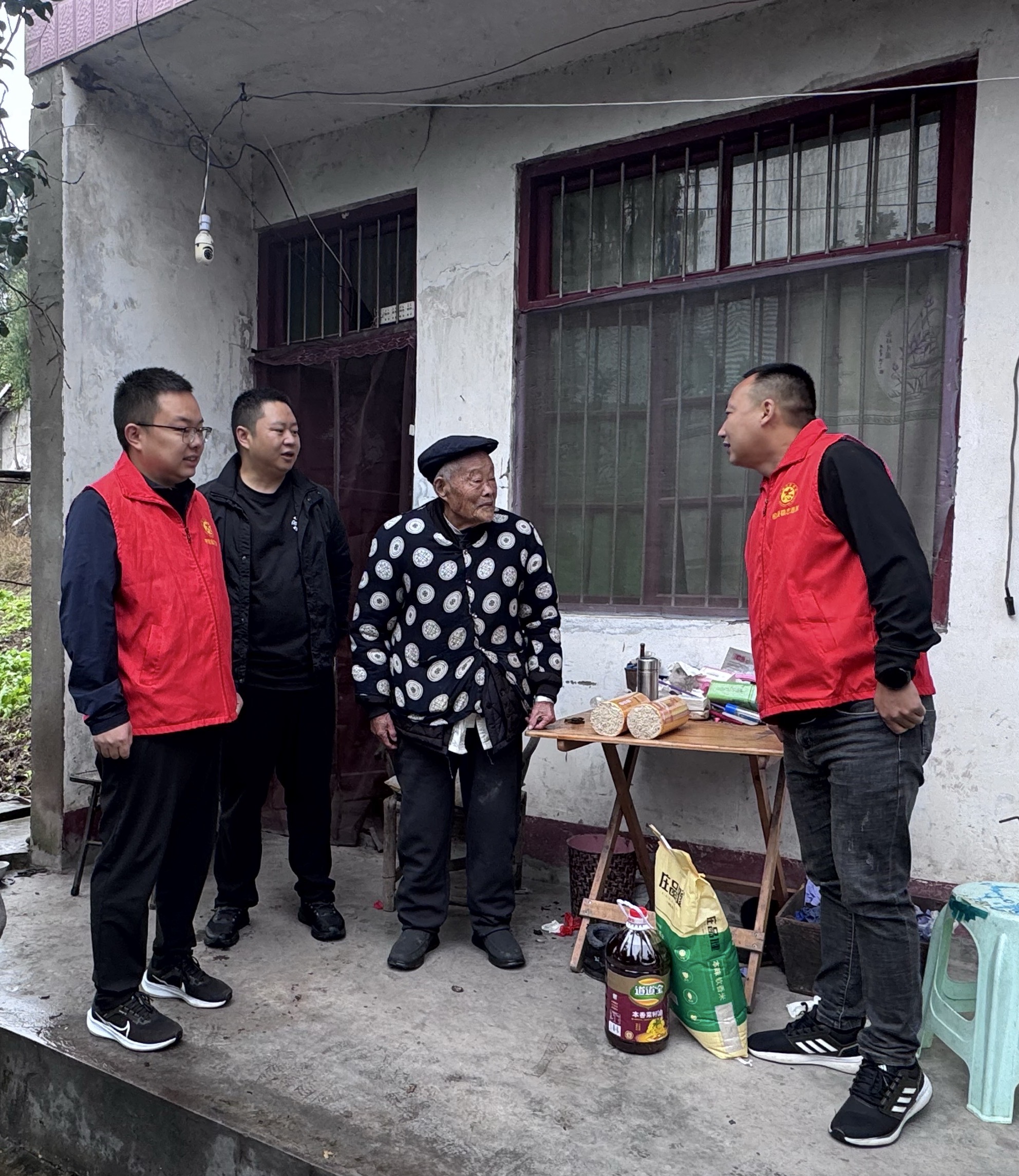 当慰问组来到虎溪村104岁高龄的杜老先生家中时,精神饱满的老人情绪高昂,喜悦之情溢于言表。谈及如今的美好生活,老人感慨万千,对党和国家充满感激之情。兴之所至,他主动要求为慰问组唱红歌。他清了清嗓子,用虽略带沧桑却依旧坚定有力的嗓音,铿锵有力的唱起了《大海航行靠舵手》——“鱼儿离不开水呀,瓜儿离不开秧,革命群众离不开共产党,毛泽东思想是不落的太阳”,激昂熟悉的旋律从小院中飞出,杜老先生歌声洪亮,眼中闪烁着对往昔岁月的追忆与对当下盛世的满足。一曲唱罢,在场人员无不动容,报以热烈的掌声。老人意犹未尽,又接连唱起了《三大纪律八项注意》等红色革命歌曲。杜老先生的歌声,不仅是对过往峥嵘岁月的深情回望,更是对当下国家富强、民族振兴、人民幸福生动图景的由衷赞美。历经百年岁月洗礼,他用最质朴也最真挚的方式,表达了一位世纪老人对祖国深入骨髓的热爱、对中国共产党念念不忘的感激、对生活在新时代的无比自豪与满心幸福。