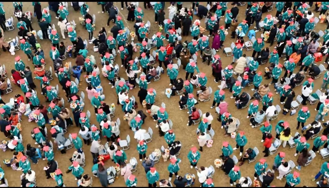 仪式现场,学子们手捧鲜花与父母并肩走过“成人门”,两侧伫立的老师微笑颔首,将期许揉进目光里。伴随着庄严的国歌声,五星红旗冉冉升起,少年们的肩头,在这一刻悄然扛起了更大的责任。随后,家长们为孩子佩戴上成人礼帽与徽章,递过《宪法》手册,这不仅是一份仪式信物,更是法治精神与责任意识的传递。同学们的铿锵誓言交织成青春最强音。当《感恩的心》手语舞旋律响起,同学们的每一个动作都浸着暖意,不少家长红了眼眶;“揖手礼”与家书传递环节,让现场温情满溢,一封封信笺里,藏着少年少于言说的爱意,拥抱的温度,成了此刻最动人的成人注脚。