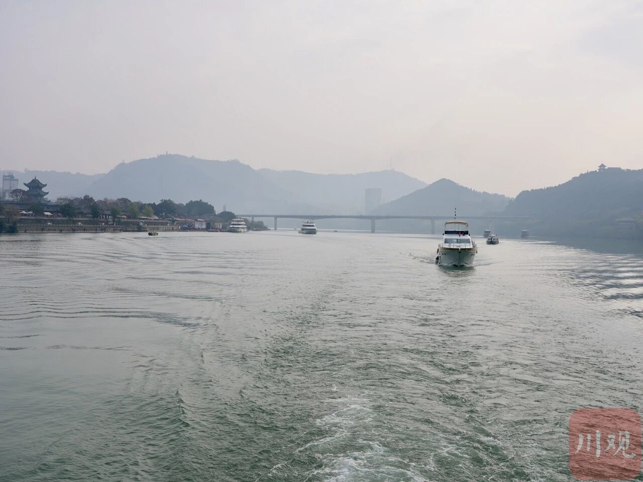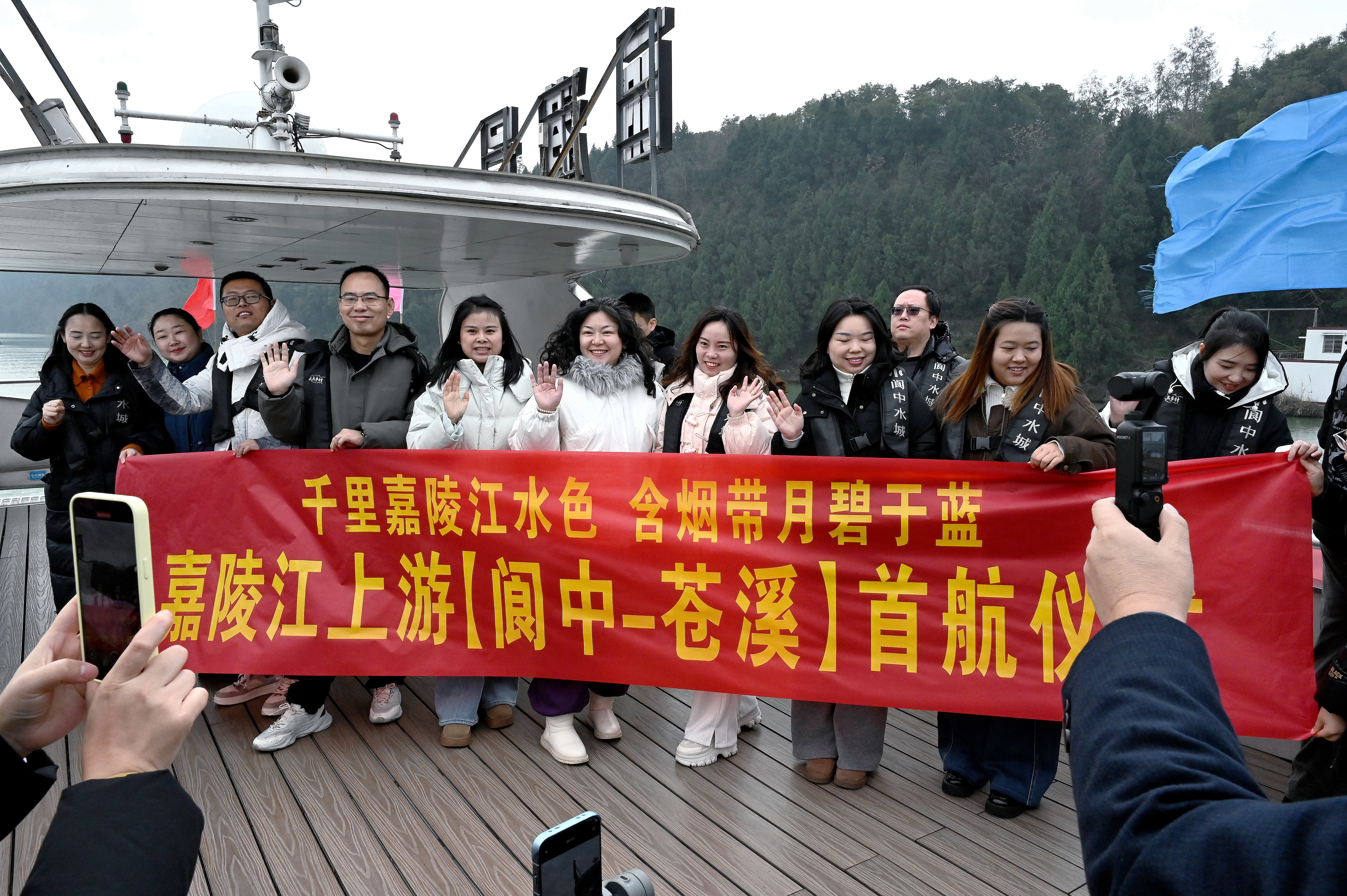 启动仪式结束后,在彩烟礼炮与悠长汽笛声中,嘉陵江上游“阆中-苍溪”水上航线首航正式启航,标志着联通阆中、苍溪两地的水上新通道正式投入运营。
