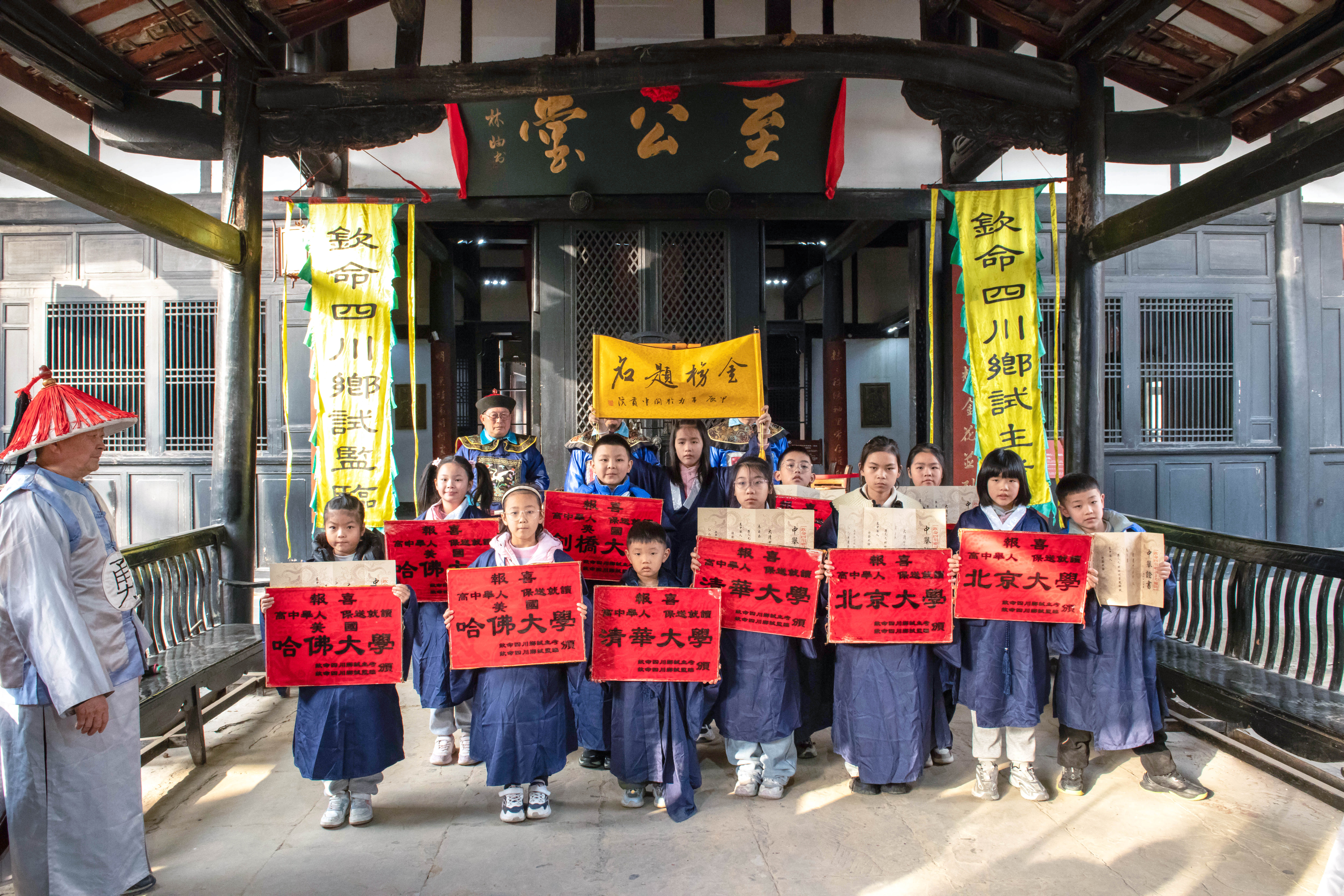 在学道街四川贡院,同学们身着古装,走进号舍,亲身感受古代学子赴考的场景,深刻感悟到古代士子“十年寒窗”的艰辛历程,对“宝剑锋从磨砺出”的奋斗精神有了更加直观的认识。
