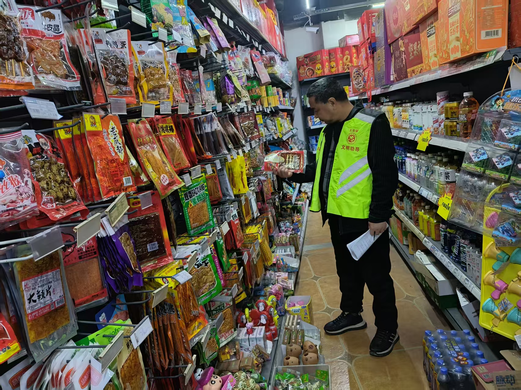 在前次召开的春节前安全生产部署会后,由镇安办牵头,联合应急办、食安办、交管办、森防办等部门组成的联合宣传组和专项检查组,以“宣传全覆盖、排查无死角”为工作总抓手,聚焦消防、烟花爆竹、食品卫生等重点领域开展联合安全大宣传、大检查活动。宣传组通过现场分发宣传资料和讲解的方式,给过往群众宣讲安全防范知识;检查组先后深入旭兰超市、烟花爆竹直销店、街头流动爆米花摊点及辖区餐饮门店等场所,围绕消防安全、食品经营、烟花爆竹存储、流动摊点用火规范等核心内容开展全面排查。