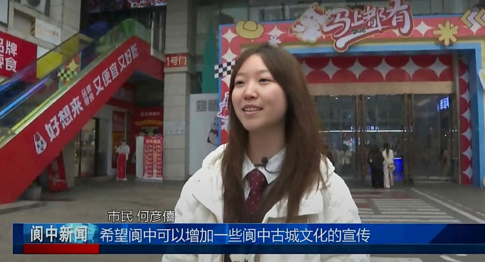 市民何彦僖:“希望阆中可以增加一些古城文化的宣传,让更多外地人了解阆中的春节文化。关于出行方面我觉得可以增加共享自行车,这样可以方便市民们出行。”