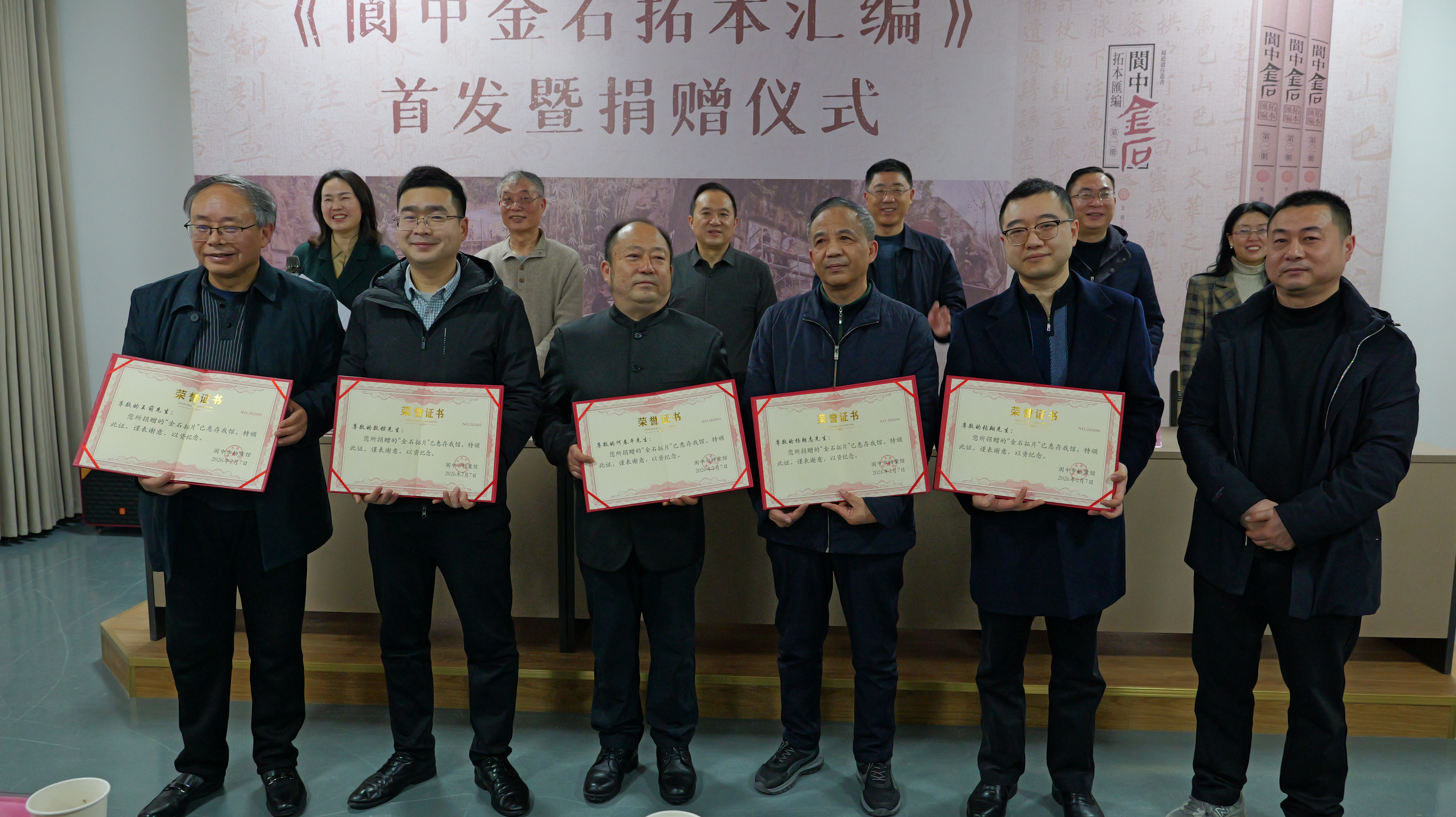 2月7日,《阆中金石拓本汇编》首发暨捐赠仪式在市“两馆一中心”举行,市政协主席、党组书记张晓波,阆中古管局党工委书记、局长张玉杰,党工委副书记、副局长屈瑛,《阆中金石拓本汇编》学术顾问西安市文史研究馆研究员宗鸣安,以及南充文化旅游职业学院,西华师范大学蜀道研究院,阆中古管局,市委办、市人大办、市政府办、市政协办,阆中金石田野调查小组成员参加了捐赠仪式。