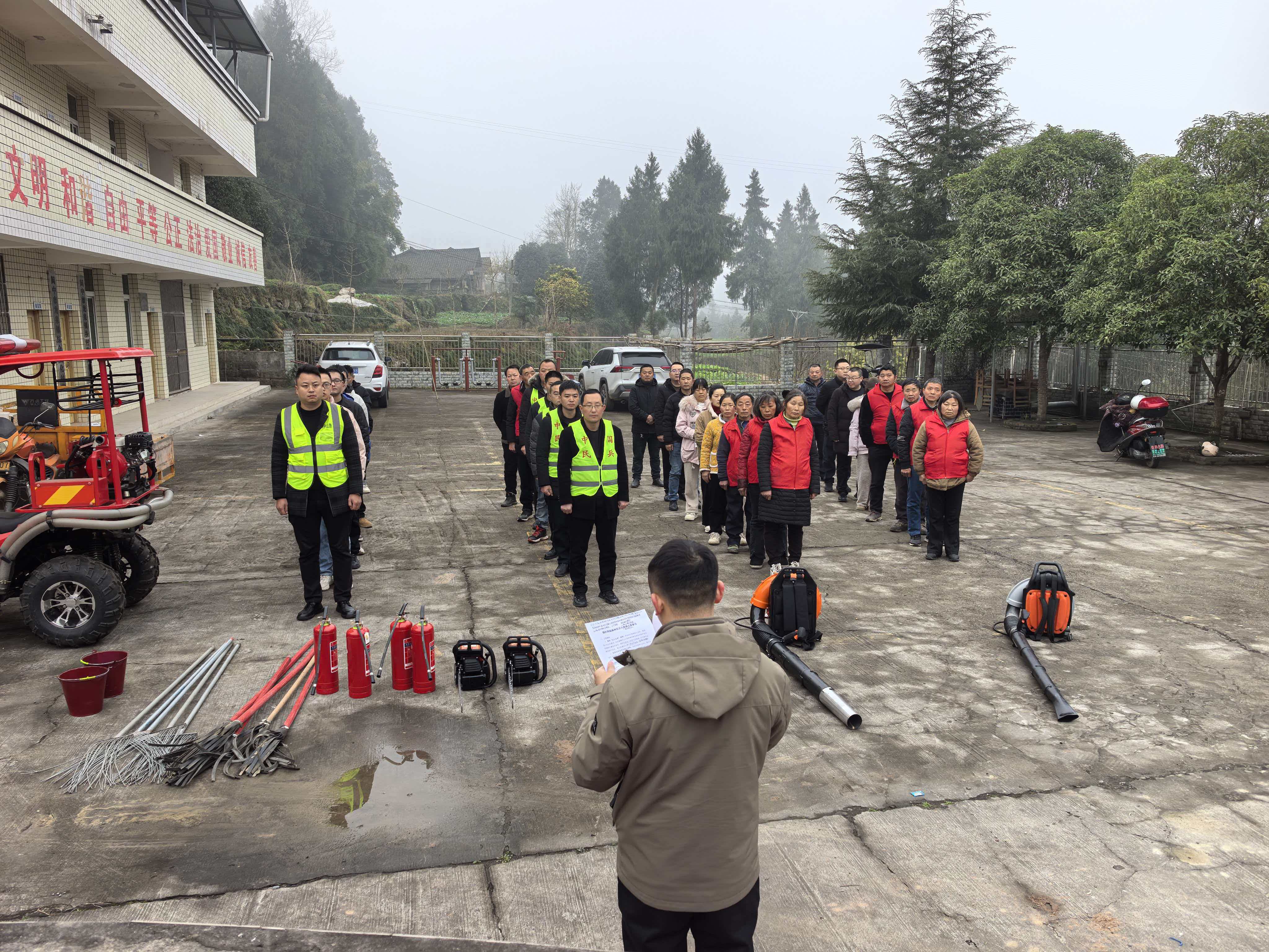 演练前,镇党委、政府高度重视,成立专项工作组,明确职责分工、细化演练方案,确保每个环节有序衔接、落到实处。工作人员提前对演练场地进行勘察,排查各类安全隐患,同时通过村广播、微信群、宣传横幅等多种形式,普及消防、森林防灭火法律法规、火灾报警流程及初期火情处置技巧,营造“人人讲防火、人人懂防火、人人守防火”的浓厚氛围。此外,专业人员现场讲解干粉灭火器、防火拖把等器材的使用方法,细致拆解“提、拔、握、压”操作要领,为实战演练筑牢理论基础与技能支撑。