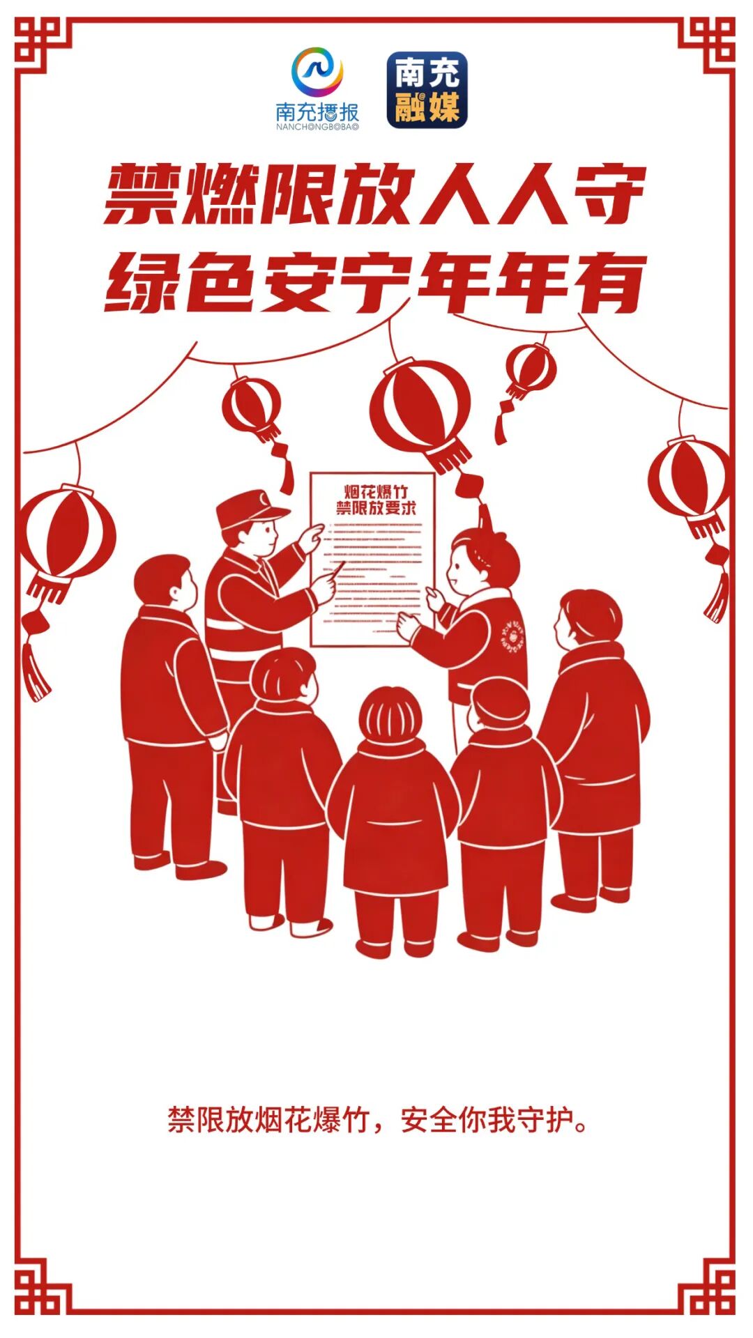 在中国人的记忆里,春节离不开烟火气。但随着时代的发展,“年味” 的表达方式正在悄然升级。我们愈发明白,平安是最好的年味,文明是最美的风景。为了让这份 “年味” 更纯粹、更安全、更清新,在此,我们向全体市民朋友发出倡议:自觉遵守烟花禁燃限放规定,以文明之约守护家园平安,以绿色之举共绘新春美景。