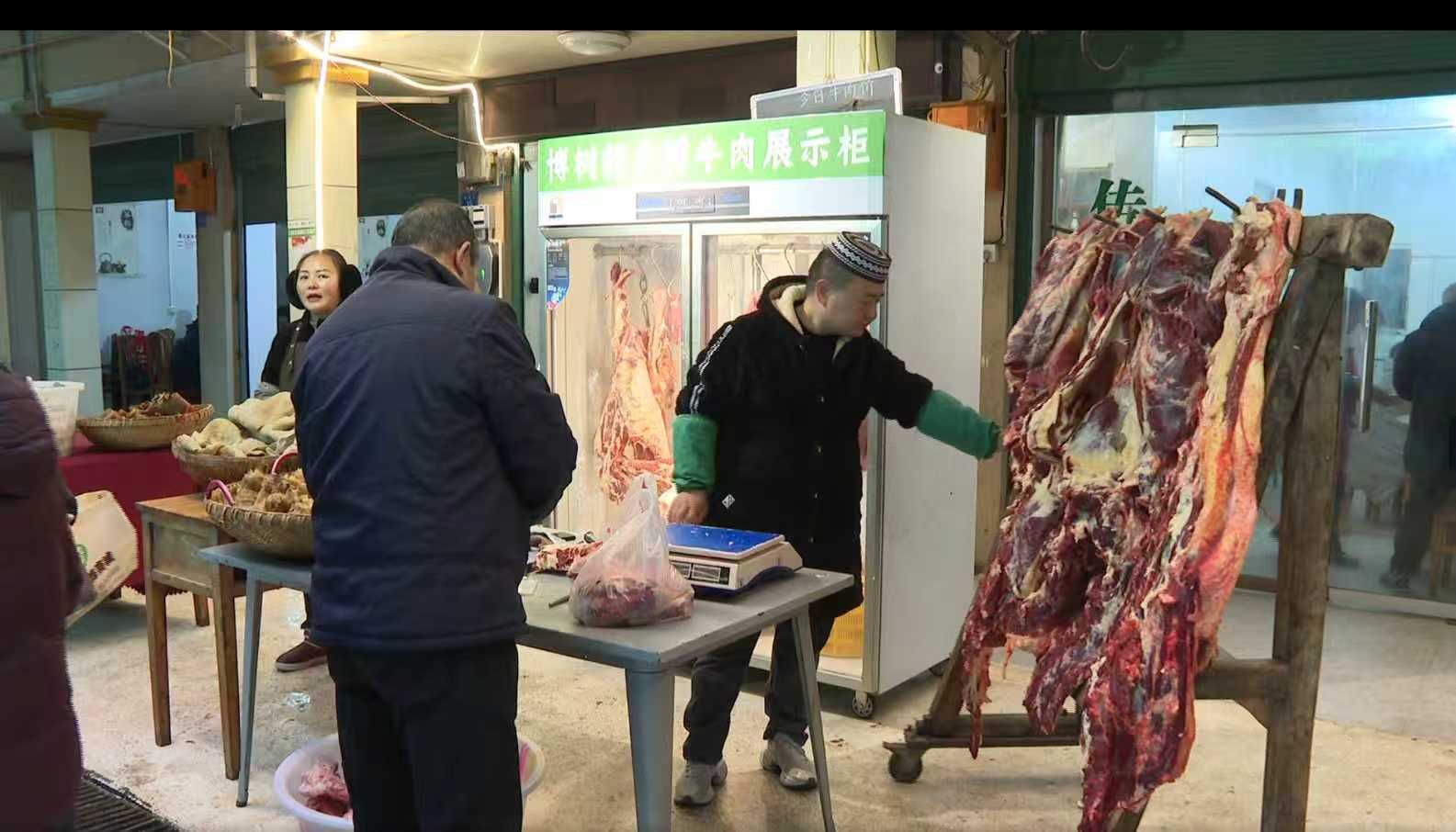 市民 蒲清华:“我听说这边是一个少数民族乡,牛羊肉很正宗,所以说我(专门)就来到这边来,采购一些牛羊肉回去给家里的老人小孩吃。”