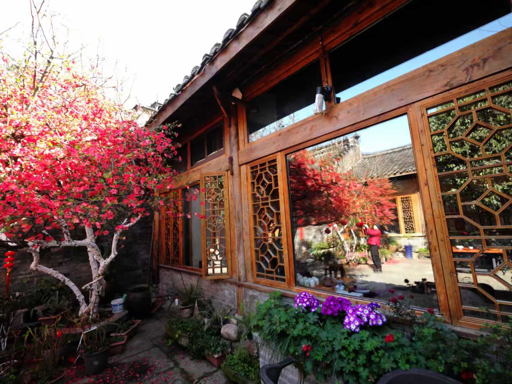 春风拂过,海棠花层层叠叠缀满枝头,红韵相间,艳而不俗,柔而不弱。青砖黛瓦作底,红灯笼相衬,百年钱庄的厚重与春日繁花的灵动相融,自成一幅绝美的画卷。远道而来的住客,拖着疲惫的行囊,踏入院门的那一刻,便被这满院海棠撞了个满怀。大都市里的焦虑、生活里的烦恼,在花香与暖阳里,渐渐消散。有人静坐海棠树下,泡一壶清茶,看花瓣随风轻舞,听鸟鸣绕梁,浮躁的心慢慢沉静;有人倚着雕花窗棂,触摸老宅的木纹,感受时光的温柔,卸下满身疲惫。面对南来北往的客人,王建华总是笑着迎上来,端上新鲜的果盘,瓜果,唠几句家常,为他们热情介绍阆中古城的历史掌故,一遍又一遍介绍土生金钱庄的历史和现在,像家人般贴心,让每一位住客都能找到归属感,在海棠花香里,寻得内心的安宁。春节期间,王建华坚持价格亲民,服务加倍,和住宿的游客一起包饺子、吃汤圆、看春晚,让客人在阆中寻味原乡,宾至如归。