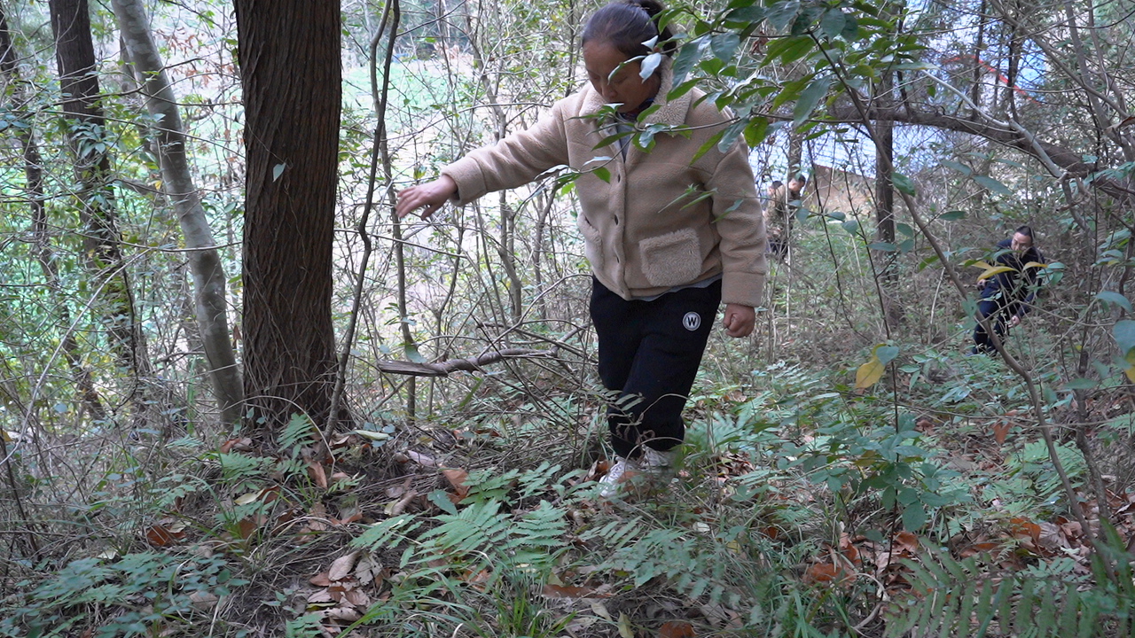 石垭子村村民赵小玲:“我走到这里,听到上面有人哭,我就有点起疑,是不是那个老人走失了,迷了路。等到确定了我就喊‘官开英,官开英,是不是你?’还是不答应,只听到哭声,我们就决定走那条小路去(寻找)。”
