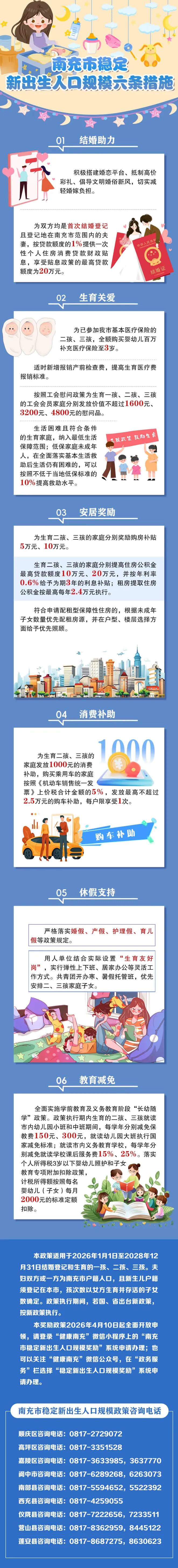 根据《通知》,为积极应对我市人口发展面临的新形势,顺应人民群众期盼,构建生育、养育、教育支持政策体系,促进人口均衡发展与经济社会高质量发展相协调,在严格执行现有国、省政策基础上,结合南充实际,制定《南充市稳定新出生人口规模六条措施》。