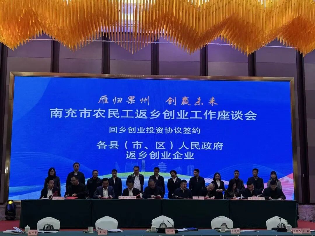 3月2日,南充市农民工返乡创业工作座谈会举行。活动以“雁归果州 创赢未来”为主题,汇聚近300名嘉宾。活动当天,9个县(市、区)与11家企业签订回乡创业意向投资协议,其中项目涵盖农业、服务业、化工轻纺、电子信息等领域,总金额达3.58亿元。