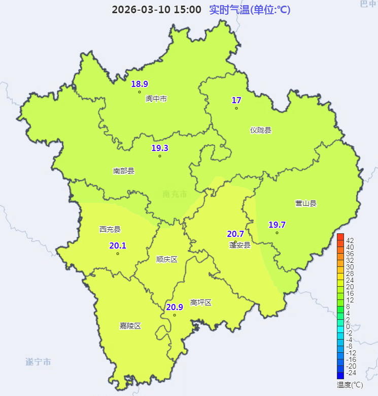 (10日15时全市各地实时气温)