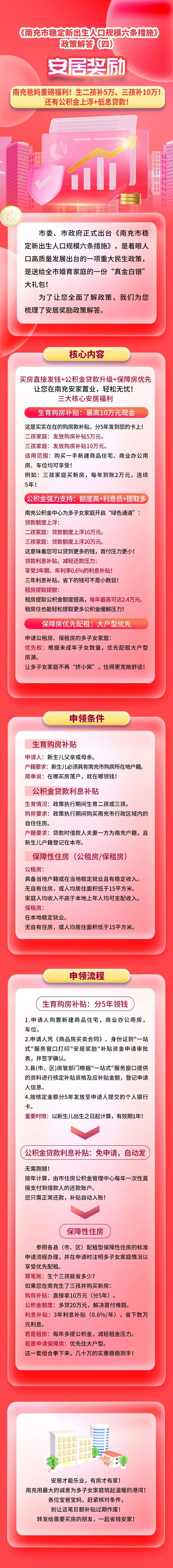 《南充市稳定新出生人口规模六条措施》政策解答(四):安居奖励 无线阆中 2026-03-12 16:36 1059 来源:健康南充 打开微信“扫一扫”,打开网页后点击屏幕右上角分享按钮 评论 0 还没有添加任何评论,快去APP中抢沙发吧! 我要评论