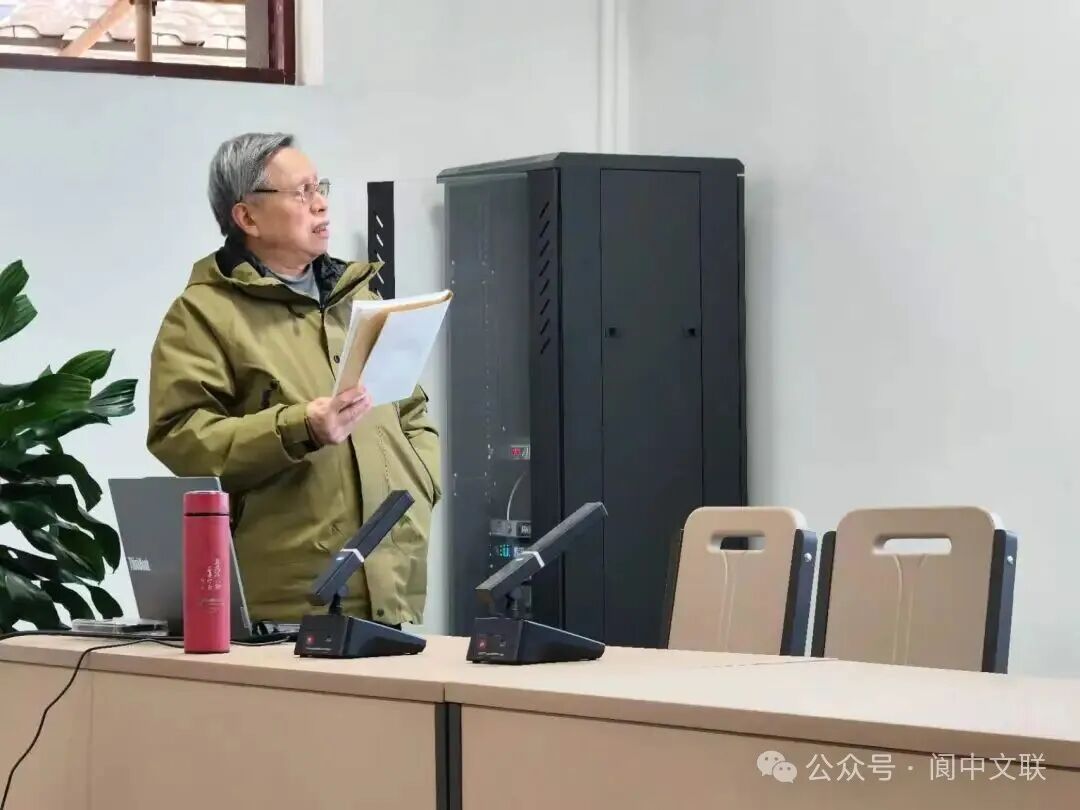 培训首次课程由阆中诗词学会名誉会长、阆中知名文史研究专家刘先澄老师主讲。刘老师在课堂中,以阆中本地传统诗歌作者的七律《送春联》为例,初步让学员领略了格律诗写作的立意、构思、选材等方面考量,以及平仄声韵、律诗格律规则,娓娓道来,深入浅出,让学员体会到传统诗歌的无穷魅力。