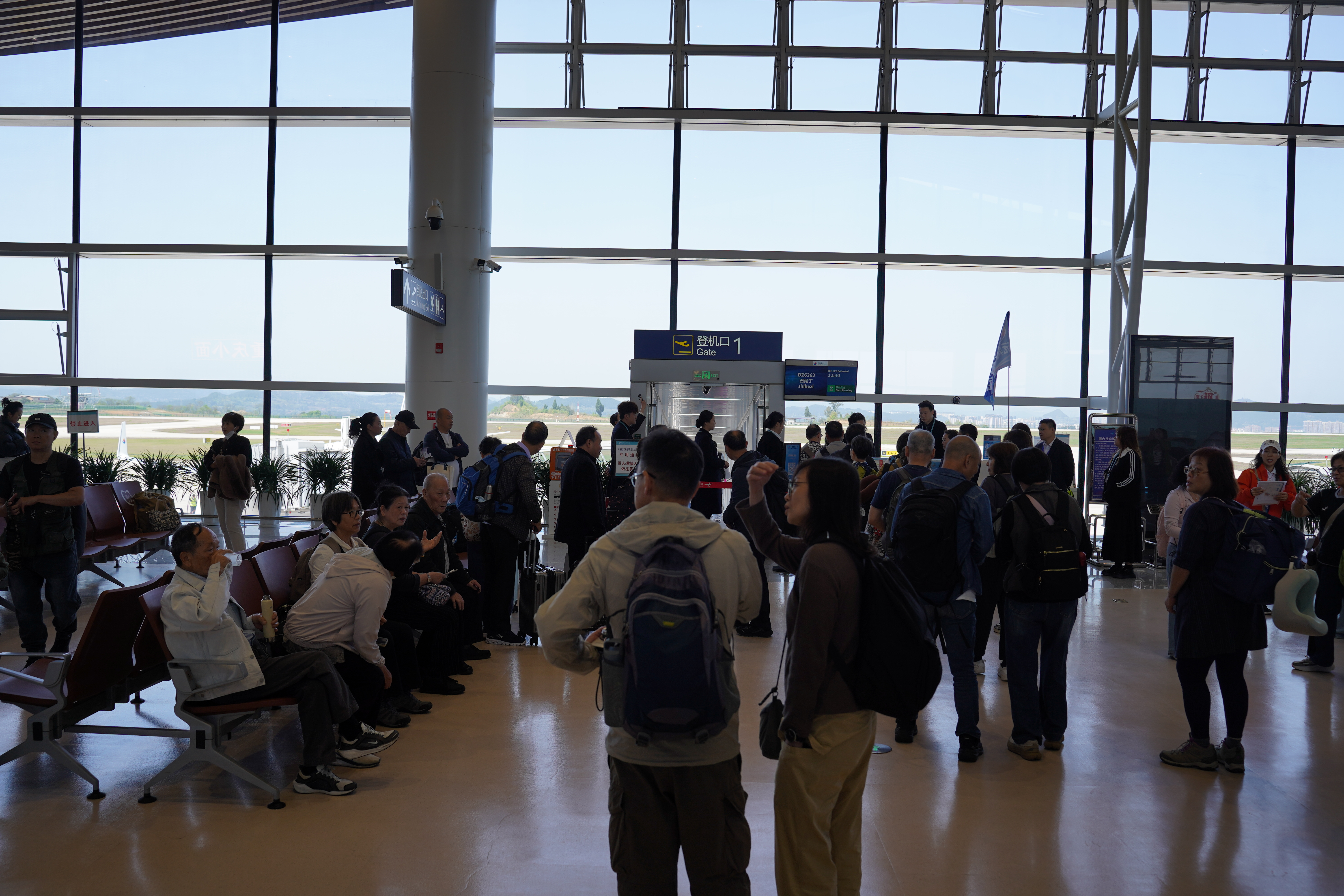 当日上午12时许,由深圳宝安国际机场起飞的东海航空DZ6263航班平稳降落在阆中古城机场。候机大厅内,旅客在工作人员引导下有序核验登机牌,依次登机,搭乘首趟航班飞往石河子。