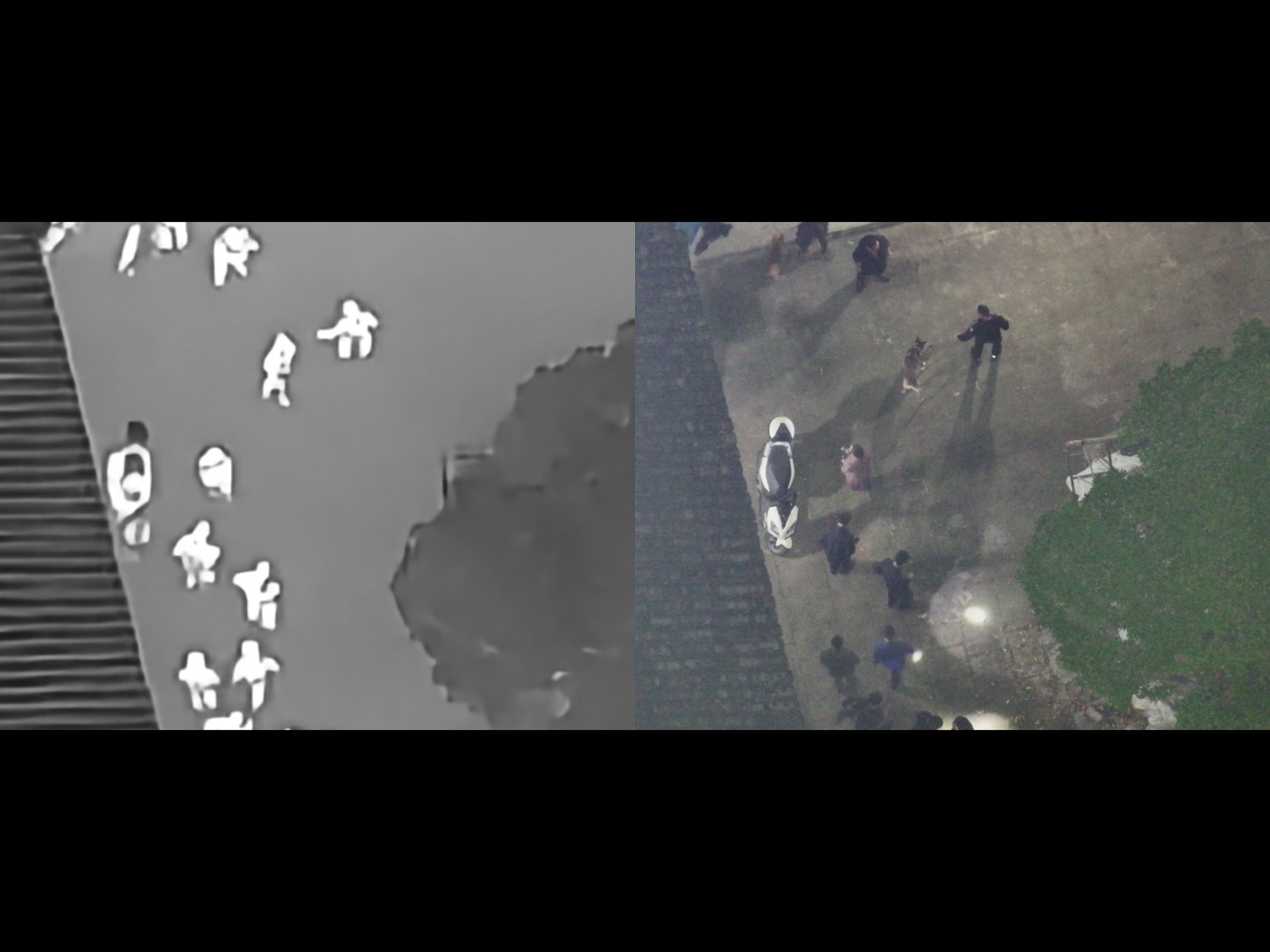 市公安局反恐特警大队警犬中队辅警陈平:“热成像无人机能精准捕捉人体热源,弥补视觉盲区,警犬的嗅觉追踪可以锁定老人行走轨迹,两者互补大大缩短了搜救时间。”