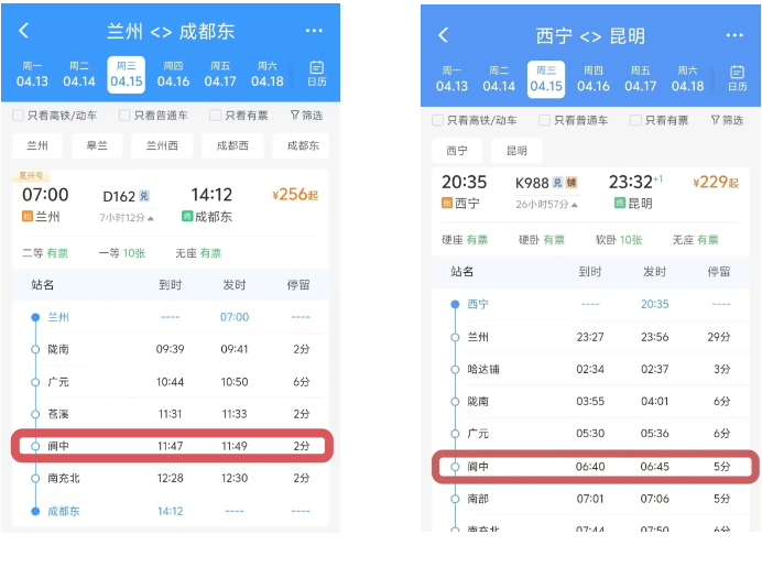 阆中站将新增两列停靠列车