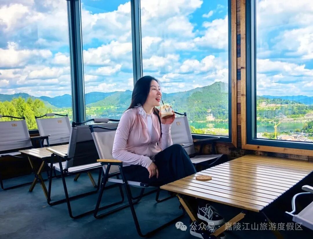 在嘉陵江山旅游度假区水城唐家山上,藏着一家视野绝佳的观景休闲打卡地——云顶咖啡。