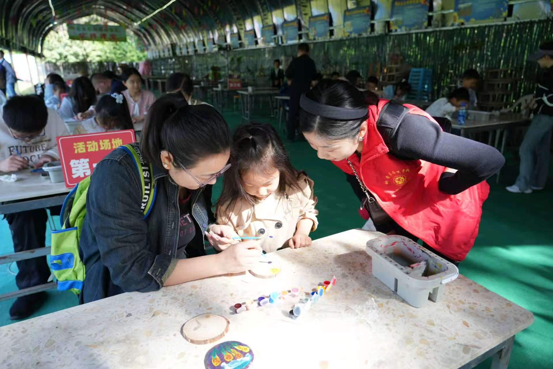实践创作课堂上,孩子们与家长并肩协作,以天然原木为画布,围绕树木年轮主题展开创意手绘。大家发挥天马行空的想象力,用五彩画笔勾勒年轮轮廓、填充多彩图案,一件件饱含童趣与创意的年轮手绘作品逐一完成。在动手实践过程中,孩子们进一步巩固了树木年轮相关知识,也在亲密配合中加深了亲子情感。