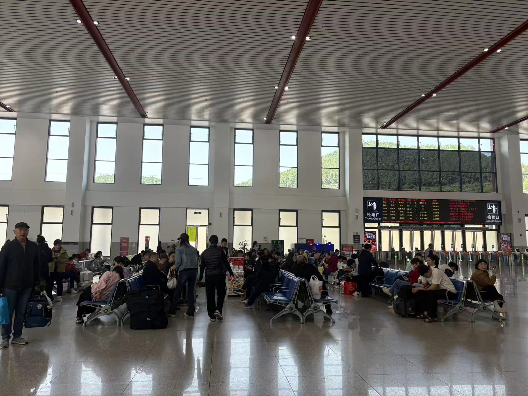 近日,记者在阆中火车站看到,进站口、候车大厅内人头攒动,人群中带着孩子出行的家庭、结伴出游的学生占大多数,往来络绎不绝。