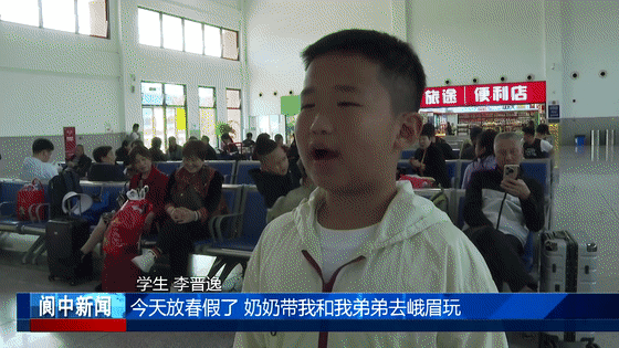 学生李晋逸:“今天放春假了,奶奶带我和弟弟去峨眉玩,我们来到了火车站,有很多行李,(火车站的)哥哥姐姐们和叔叔帮我们提行李,非常热情。”